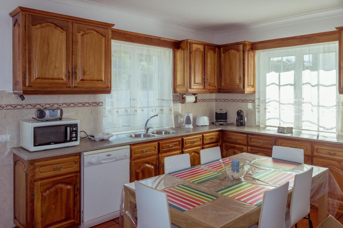 Casa de Férias. This holiday homes standout feature is the fireplace. This spacious holiday home includes 2 living rooms, 5 separate bedrooms and 2 bathrooms with a walk-in shower and free toiletries. Guests will find a stovetop, a refrigerator, a dishwasher and kitchenware in the well-equipped kitchen. The holiday home also features a barbecue. Boasting a terrace with garden views, this holiday home also offers a washing machine and a flat-screen TV with streaming services. The unit has 7 beds.