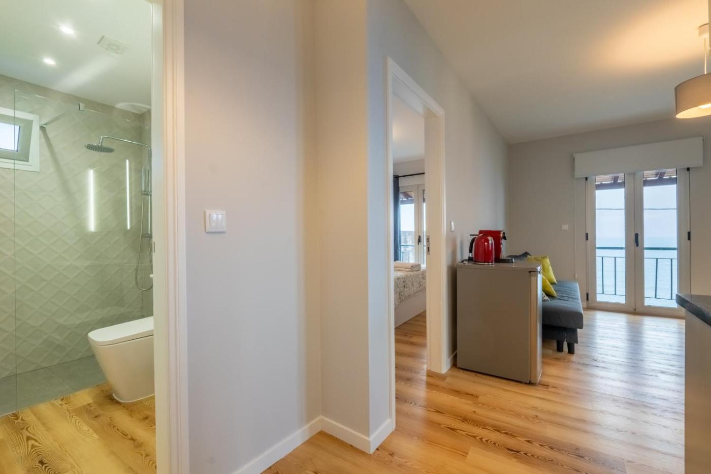 Casas das Hortas, Apartamento Vista Mar possui uma banheira de hidromassagem.